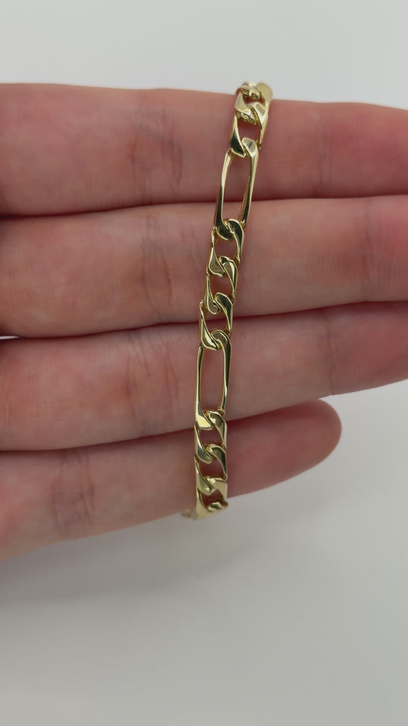 Crafted in solid 10K yellow gold, this Figaro bracelet showcases a timeless and distinctive link pattern with refined character. Featuring the classic alternating sequence of elongated and shorter links, the design creates a rhythmic, eye-catching flow that reflects light beautifully with every movement.
